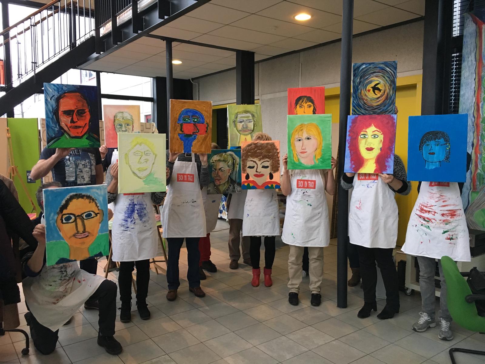 De schilderworkshop heeft een luchtig karakter en is gestructureerd opgebouwd. De teken- en schilderopdrachten zijn eenvoudig en laagdrempelig. Van schets tot schilderij, u doorloopt heteen creatief proces waaraan iedereen, jong of oud , kan deelnemen. Wij ondersteunen u met technische en artistieke adviezen waardoor u in een mum van tijd uw ‘’kwastangst’’ overwint. Onvermoede talenten komen naar boven tijdens het creatieve proces. Plezier staat voorop.