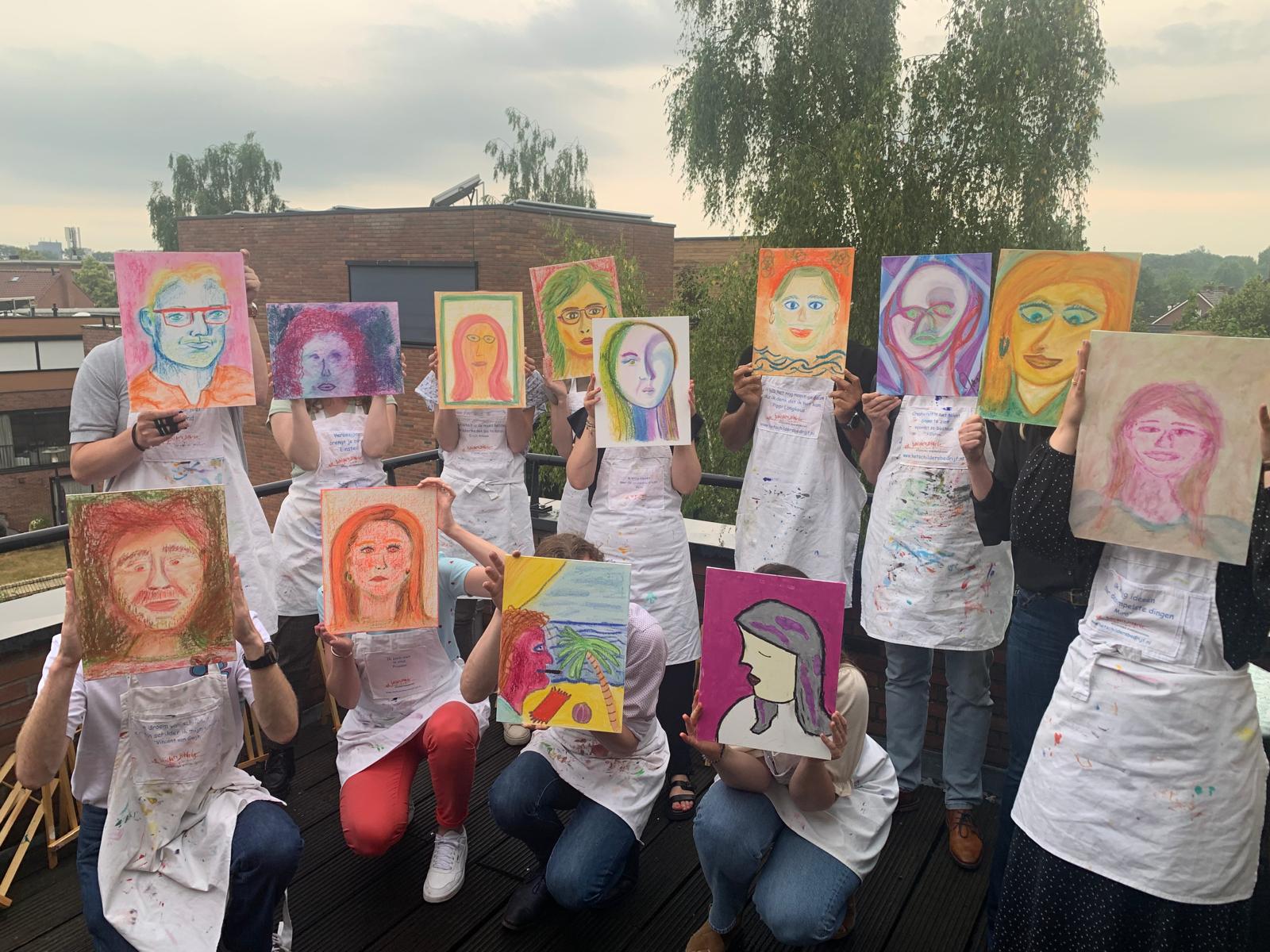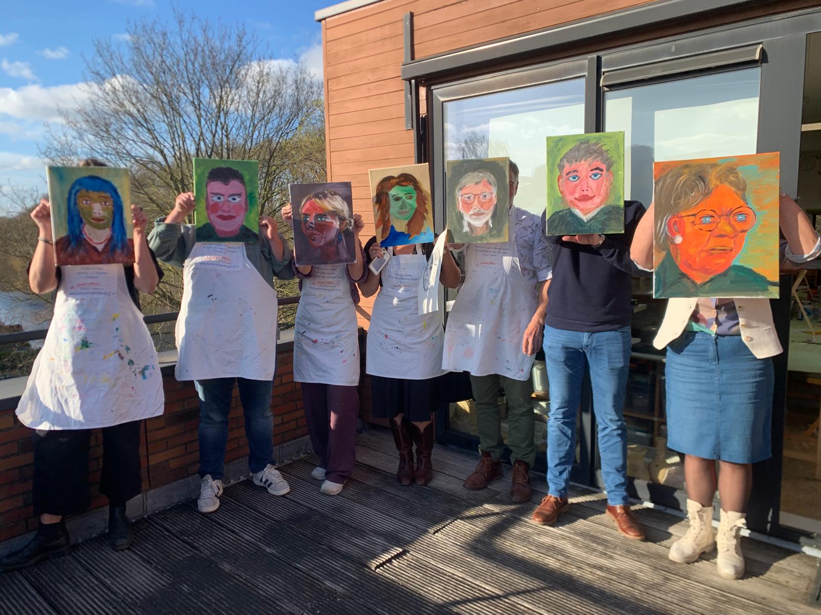 Kijken en bekeken worden. Je kruipt in de huid van de kunstenaar en staat tegelijkertijd model. Jullie schetsen en schilderen en bekijken elkaar met andere ogen. Er is ruimte voor interactie in het onderdeel kleur bekennen. Jouw persoonlijke kleurprofiel levert input voor degene die jouw portret schildert. Je leert elkaar op een creatieve manier nòg beter kennen.